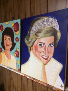 A. I am glad you asked this question and I feel so special about it I painted a pop art painting of Princess Diana. I also used rhinestones and pearl beads for the crown and her jacket and she is smiling and it is just my favorite thing.